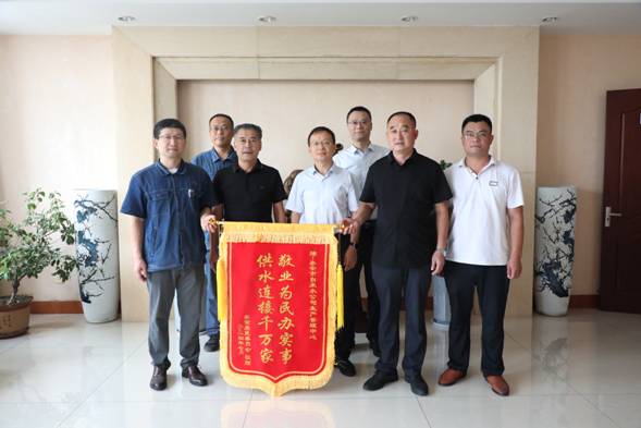 ?? ???? ? “感謝市自來水公司的工作人員大雨天連夜搶修,保障我們小區(qū)正常用水”。 7月12日,泰前居委會范主任一行將一面寫著“敬業(yè)為民辦實(shí)事,供水連接千萬家”的錦旗送到泰安市自來水有限公司生產(chǎn)管理中心,對搶修人員連夜冒雨搶修電纜保障民生供水表達(dá)了衷心感謝。