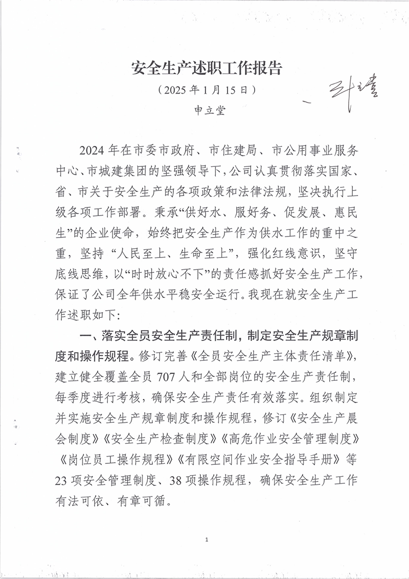 您當(dāng)前位置》供水要聞》安全生產(chǎn)述職工作報告